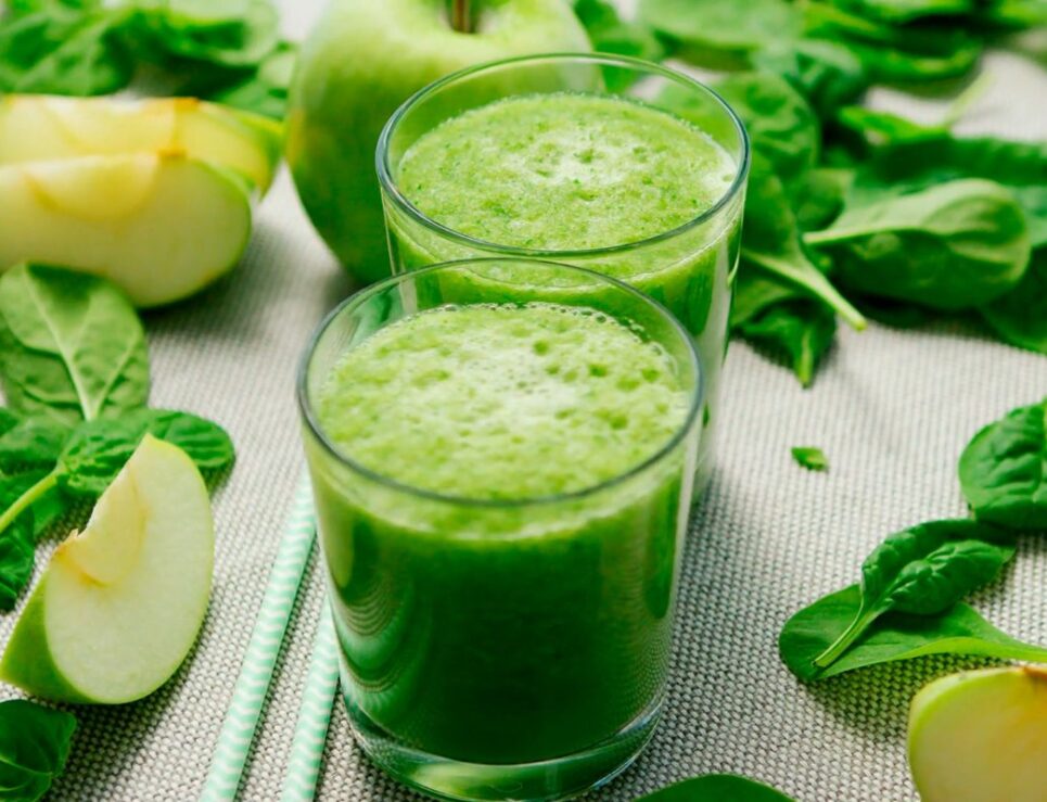 Jugo verde preparado con manzana verde y espinaca. Foto de Pexels.