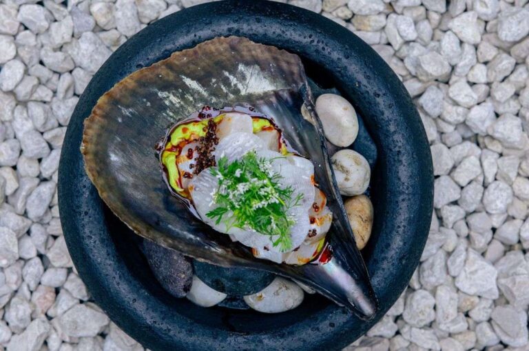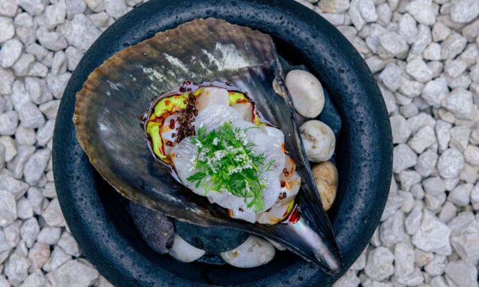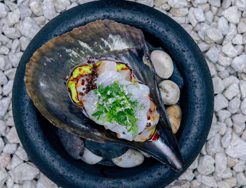 Callo de hacha, emulsión de miso, aguacate, kimchi de jícama de Pangea, foto de @pablosnc