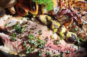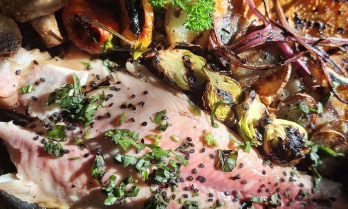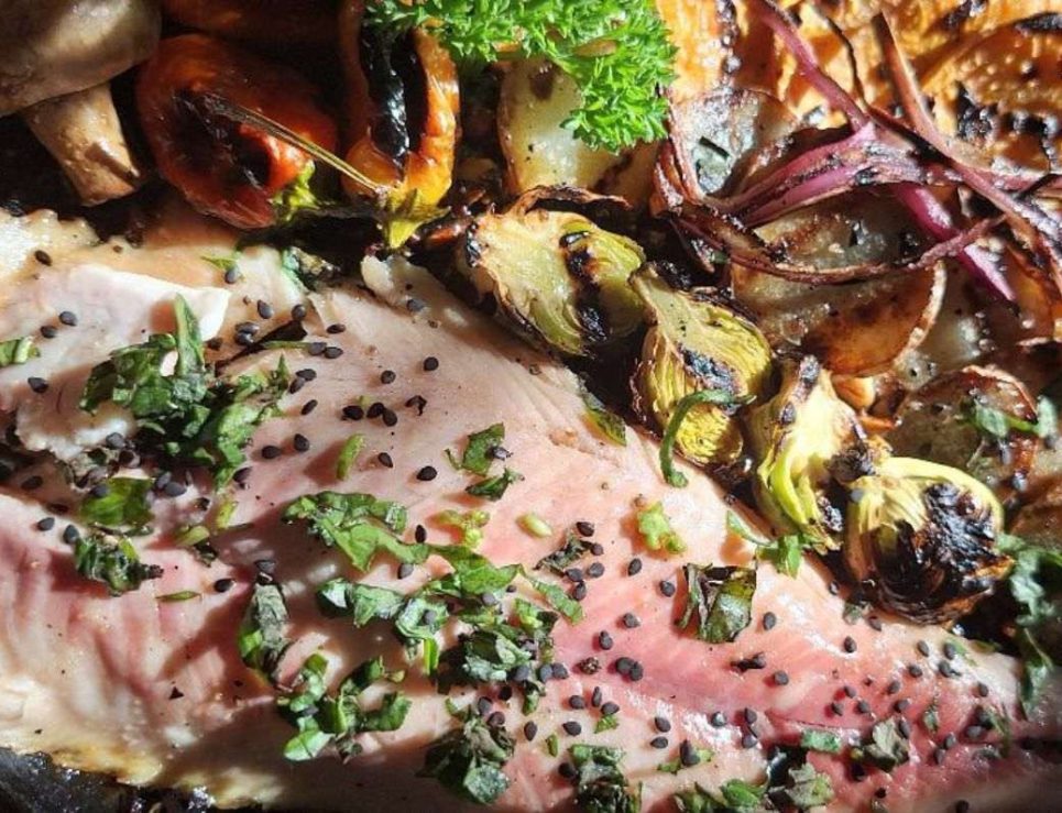 Trucha arcoíris ahumada con vegetales del huerto en Salvia, foto de Miriam Carmo