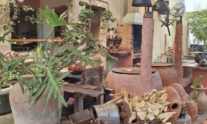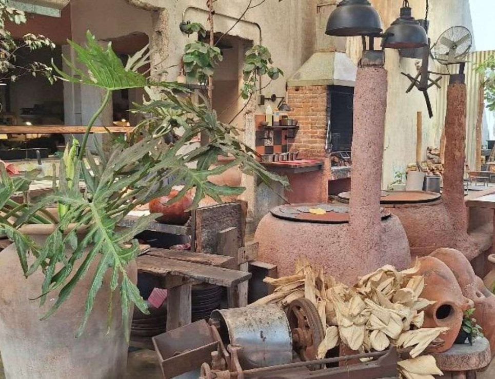 Terraza con comales y parrilla en el restaurante Negro Huitlacoxe, foto de Miriam Carmo
