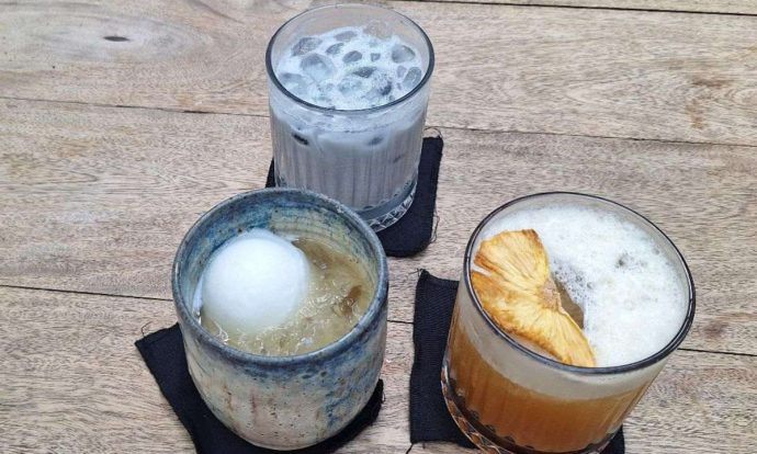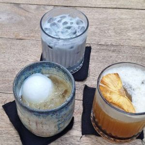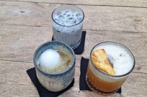 Horchata de maíz azul, tejuino y tepache en Negro Huitlacoxe, foto de Miriam Carmo