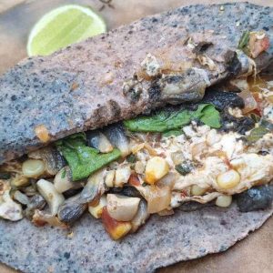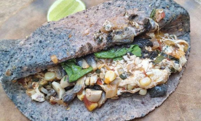 Quesadilla Huitlacoxe y berenjena a la parrilla, foto de Miriam Carmo