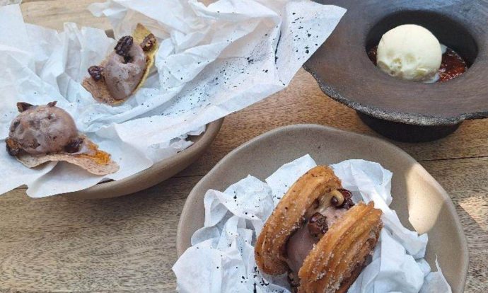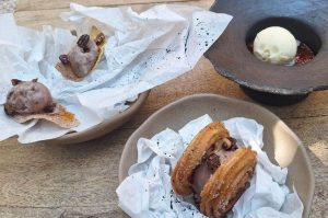 Arroz con leche y churro en Negro Huitlacoxe, foto de Miriam Carmo