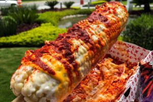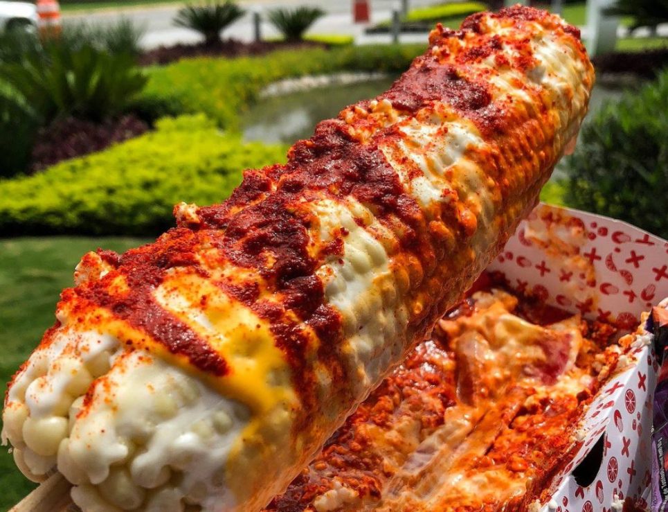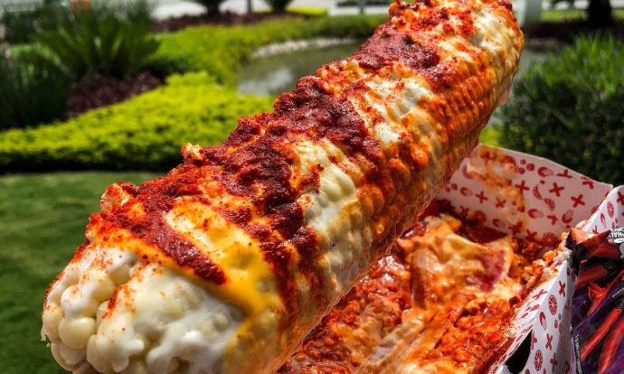 Elote preparado con mayonesa, queso fresco y chile en polvo. Foto de Flickr.