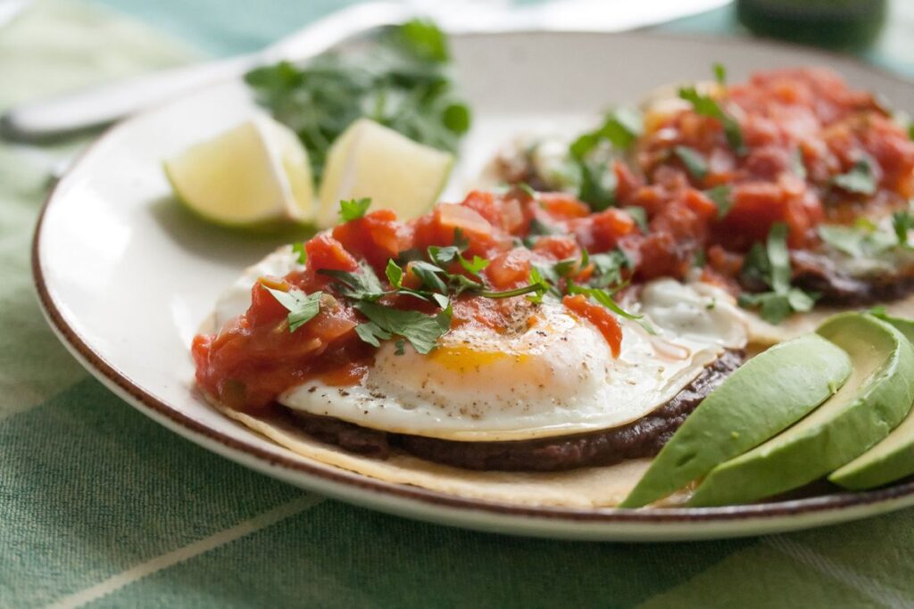 Huevos estrellados con pico de gallo (jitomate, cebolla y cilantro). Foto de Flickr.