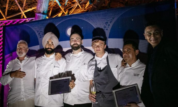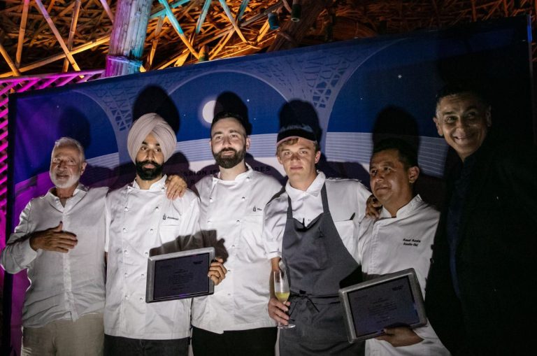 David Amar (fundador del Wine and Food Festival), chef Sassimran Singh y sus sous chefs, chef ejecutivo Manuel Morales y directivos del hotel Impression Isla Mujeres by Secrets, foto de Miriam Carmo