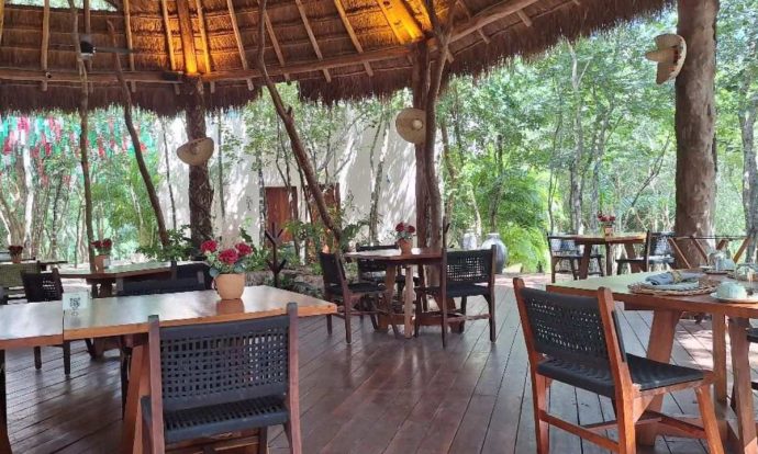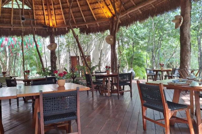 Espacio del restaurante Mestizo del hotel Oriundo Luxury Nature Villas en Valladolid, foto de Miriam Carmo
