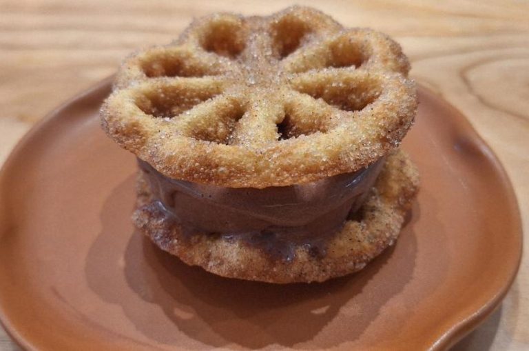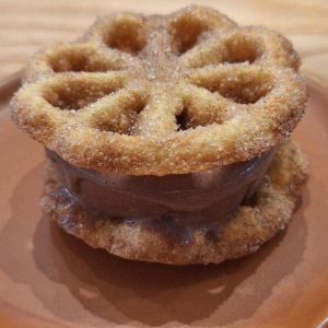 Sándwich de helado (buñuelo con helado de dulce de leche), foto de Miriam Carmo