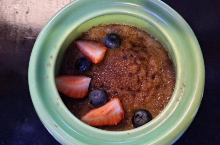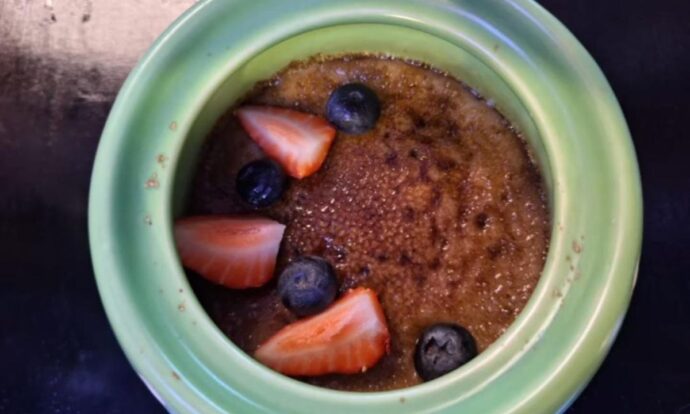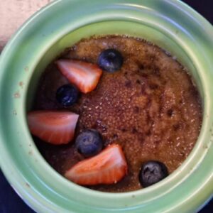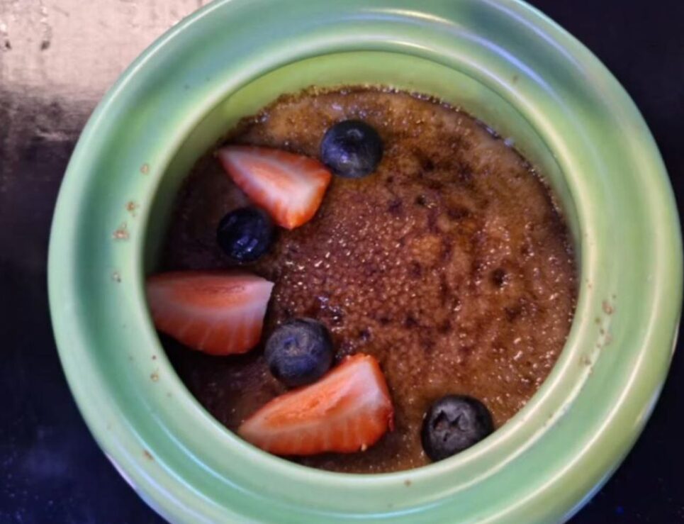 Créme Brulée de taro de Khan Asian Fusion en Cancún, foto de Miriam Carmo