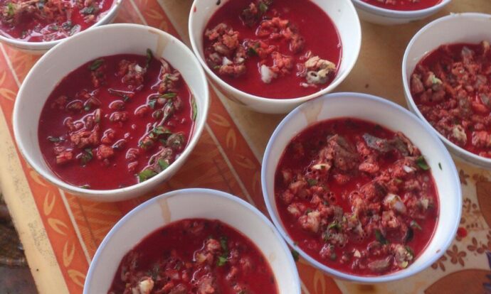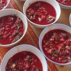 Platos individuales servidos con tiet canh. Foto de Wikimedia Commons.