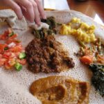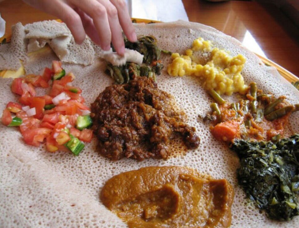 Forma de servir el injera con diferentes rellenos. Foto de Flickr.