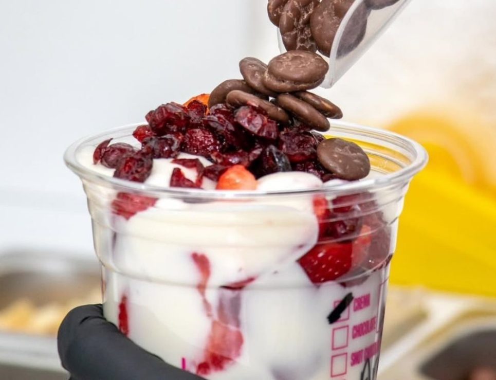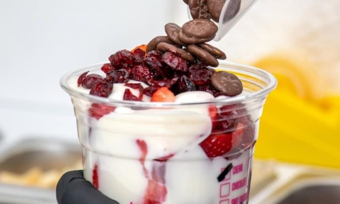 Fresas con crema con galletas de chocolate y arándanos frescos. Foto de Instagram Ando Freseando.