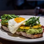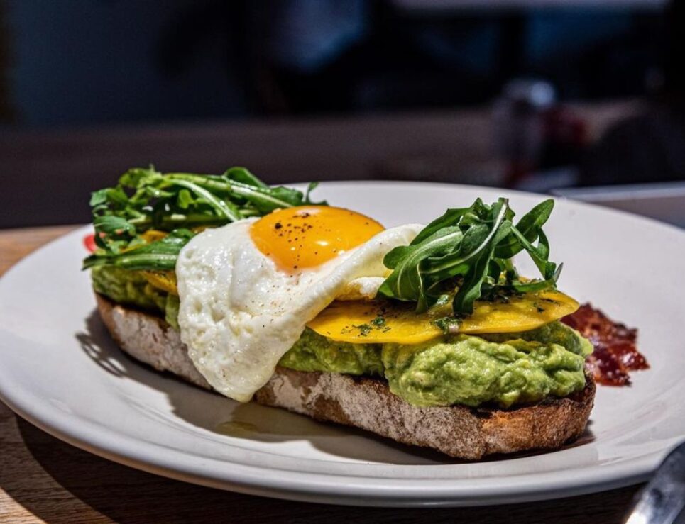 Avocado toast servido con huevo estrellado y arúgula. Foto de Instagram Lalo!