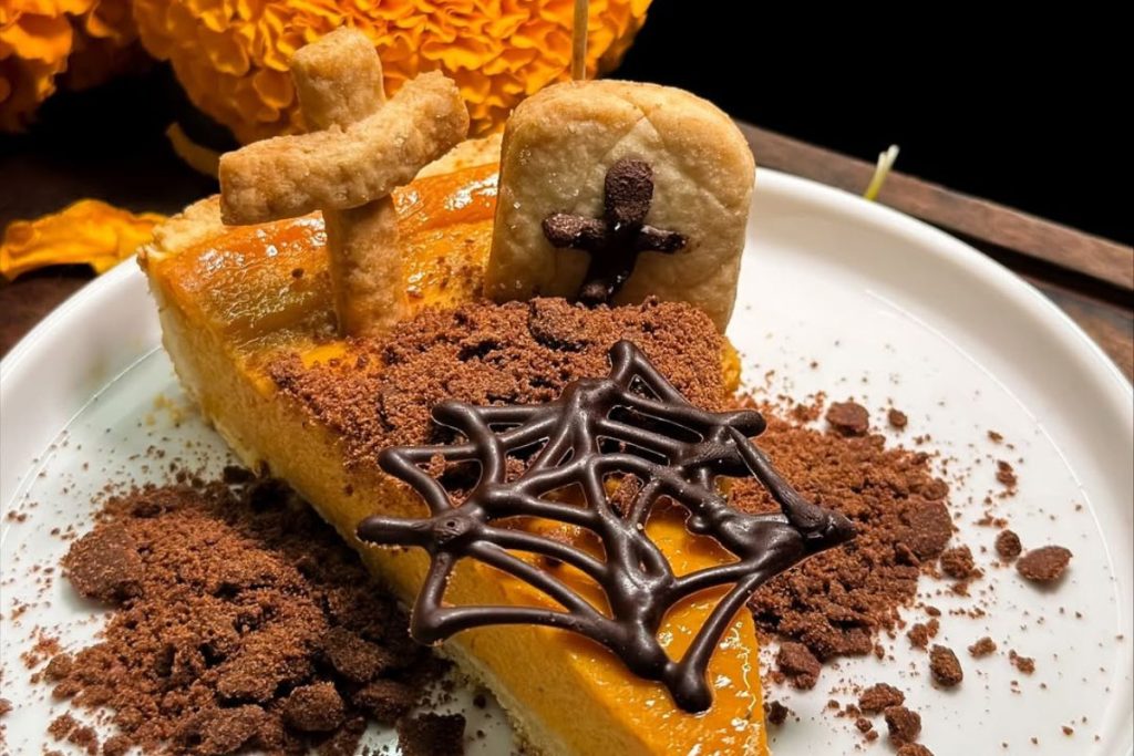 Rebanada de tarta de calabaza. Foto de Instagram La Tapperia de Comonfort.