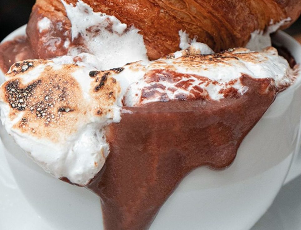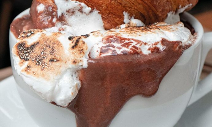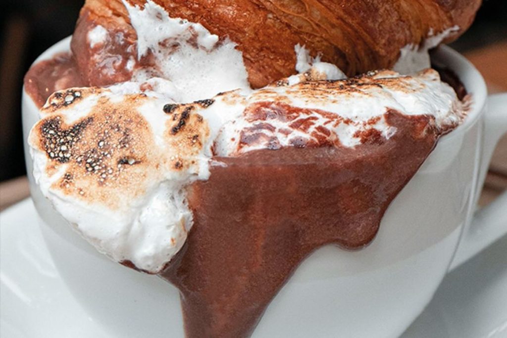 Chocolate caliente con bombones flameados. Foto de Instagram Fougasse.