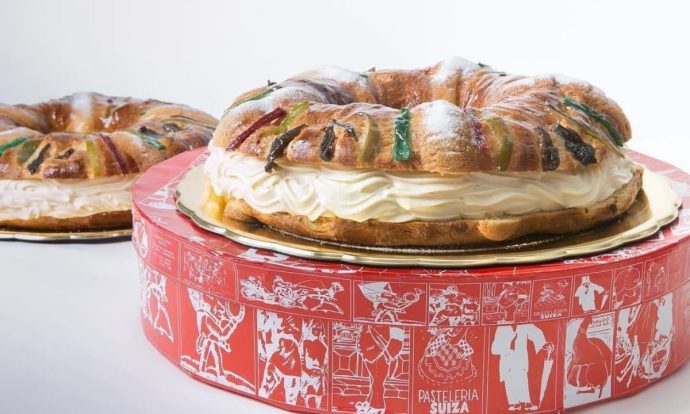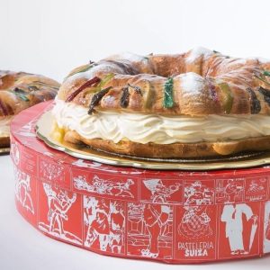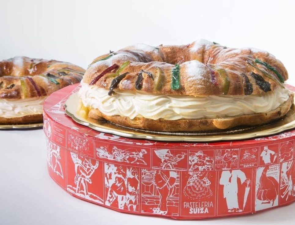 Rosca de Reyes rellena de nata montada. Foto de Instagram Pastelería Suiza.