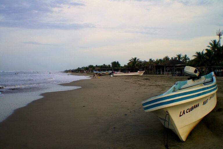 Embarcaciones para pesca local en playa. Foto de Wikimedia Commons.