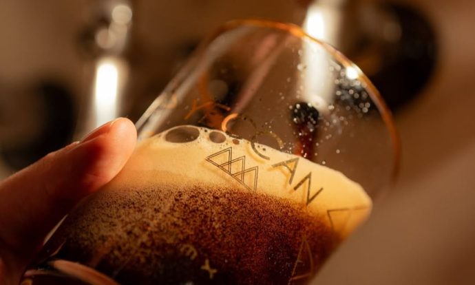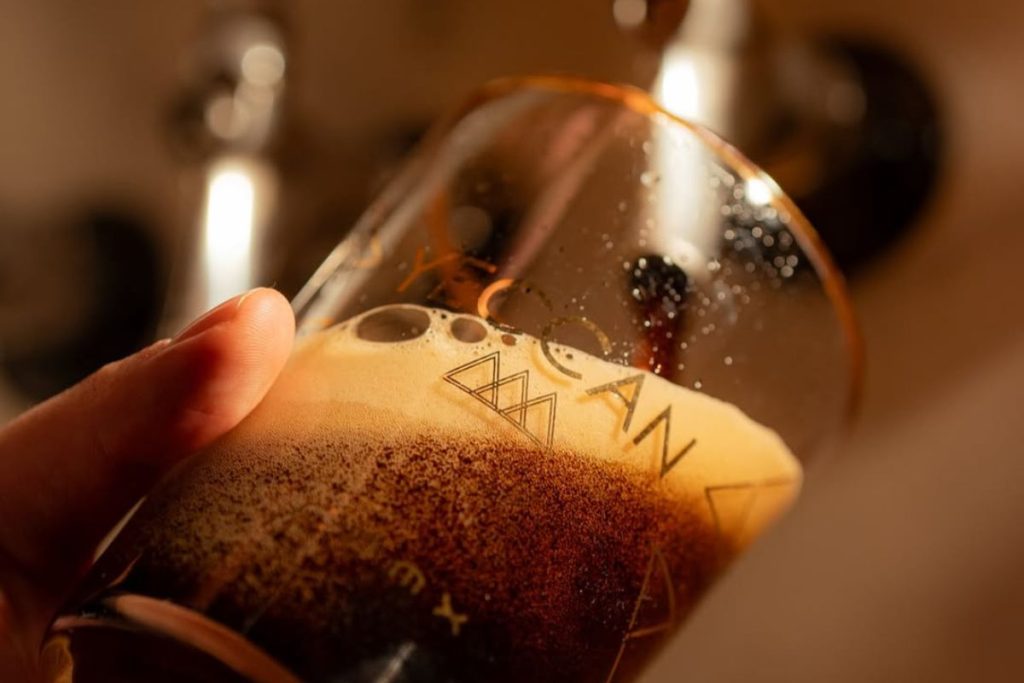 Persona sirviendo cerveza oscura. Foto de Instagram Yeccan Cervecería.