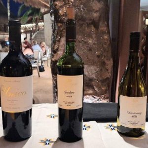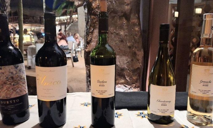 Vinos de la bodega Santo Tomas servidos en la cena con el chef Pedro Evia, foto proporcionada por el hotel