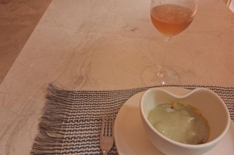 Ceviche de flores de mayo, lima, coco y langosta del chef Solís, foto de Miriam Carmo