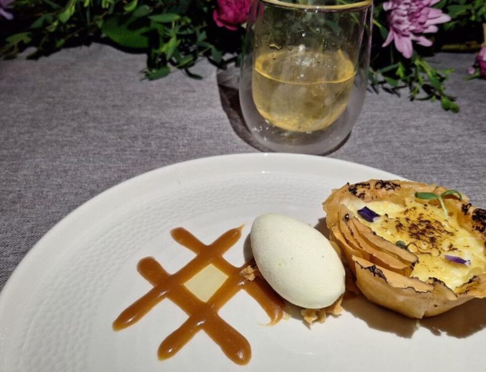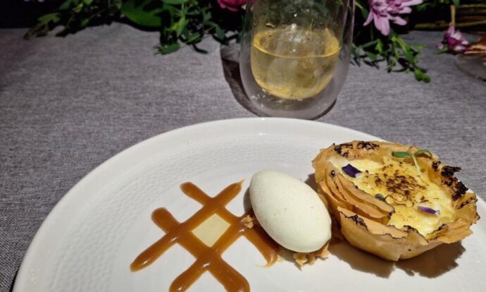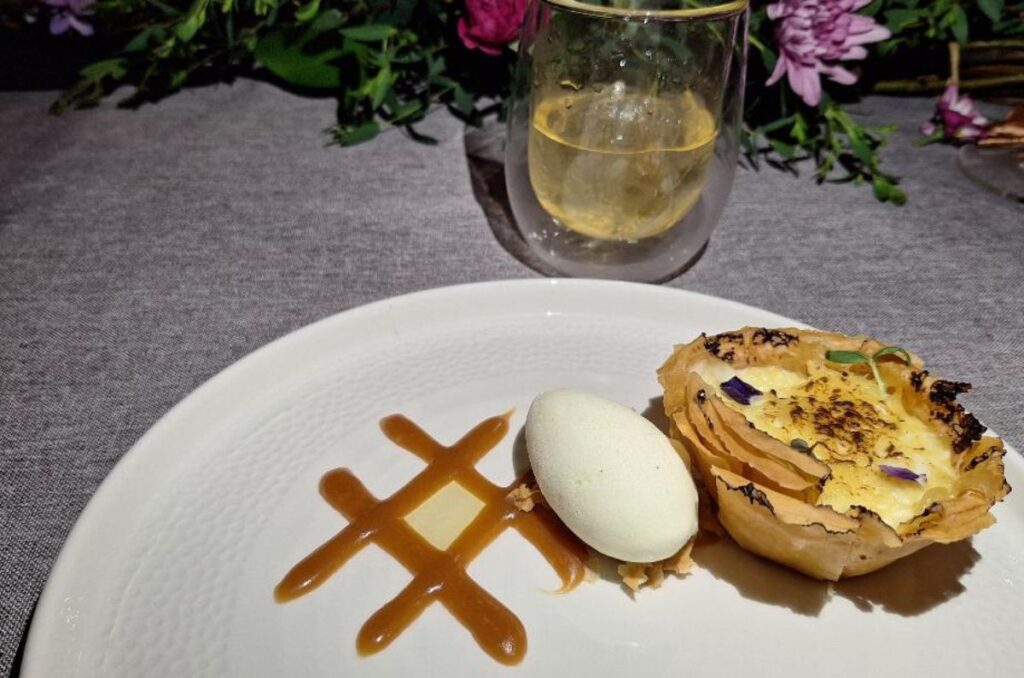 Tarta de quesos oaxaqueños, toffee de licor de naranja hecho en casa y helado de vainilla oaxaqueña del chef Baños, foto de Miriam Carmo
