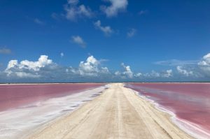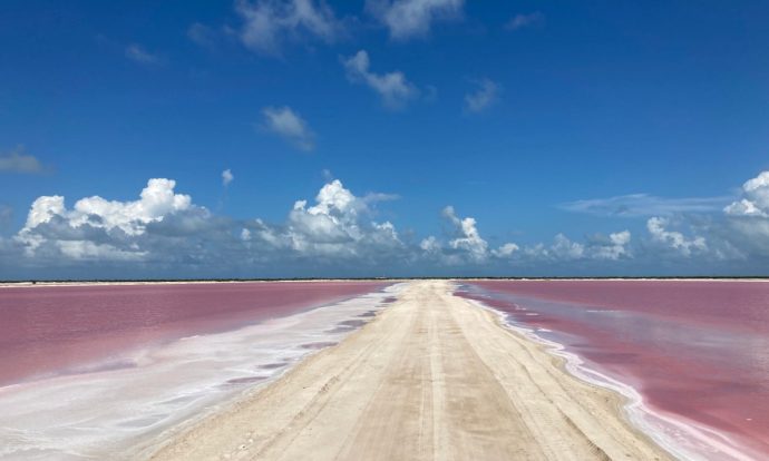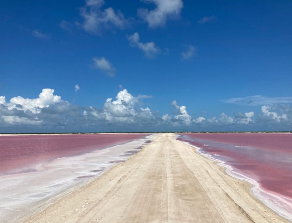 Montículos de sal de mar en Las Coloradas: una vista blanca que muestra la escala del sistema de producción salina.